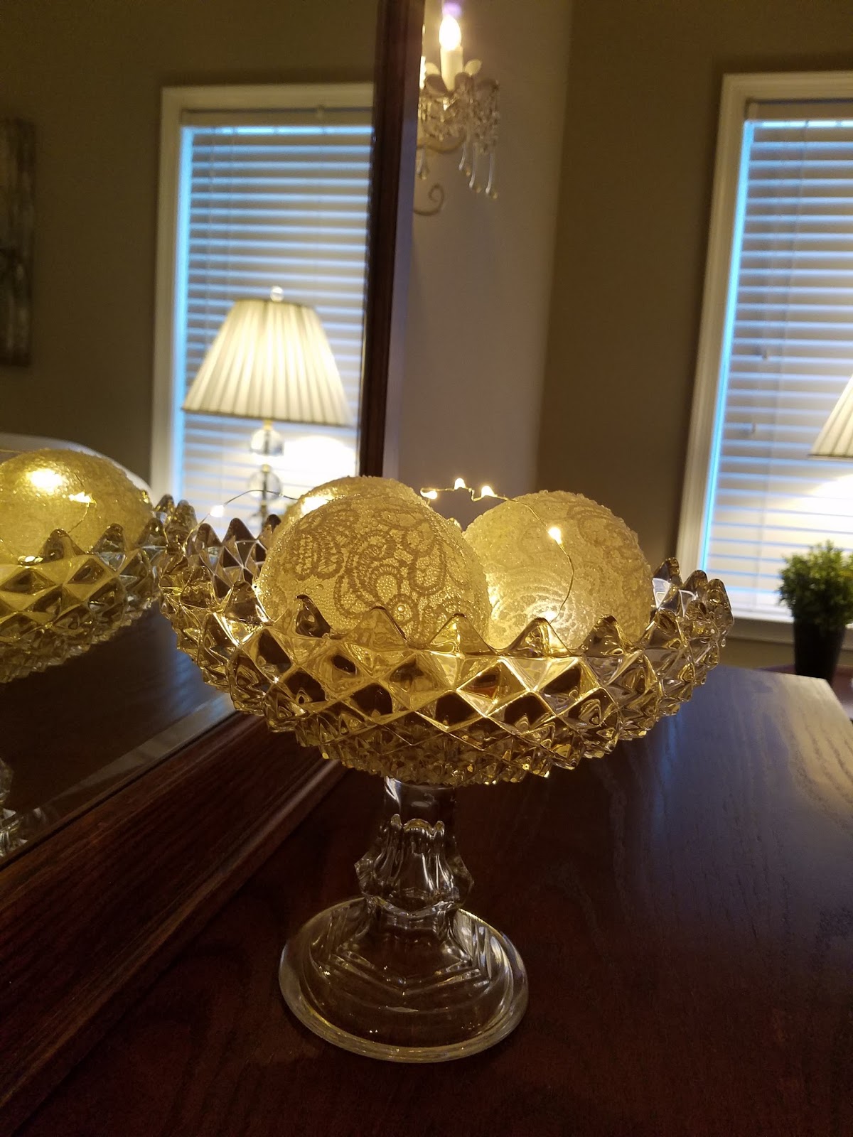 lovely way to dress up a dinner table, or side table in the living room. Just beautiful!
